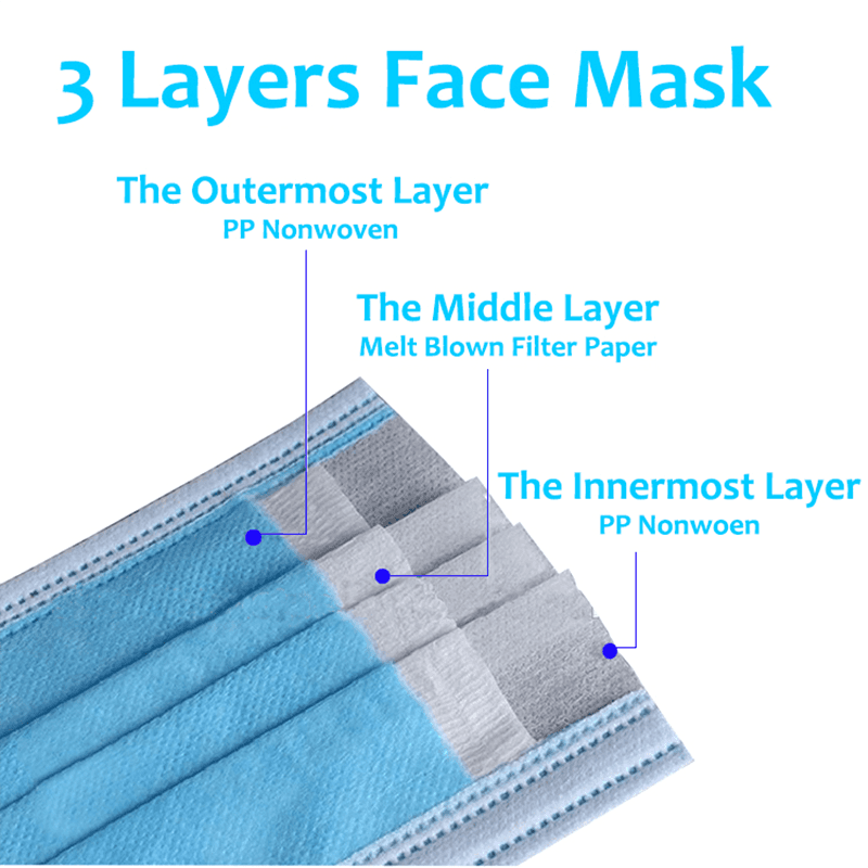 Knodotut naamarimme on valmistettu yli kolmesta kudottujen kankaiden kerroksista, ja jokainen kerros seulotaan ja käsitellään tiukasti naamioiden korkean tehokkuuden suodatuksen suorituskyvyn ja mukavuuden varmistamiseksi. Sisäkerros on pehmeä ja ihoystävällinen, keskikerros on erittäin tehokas ja ulkokerros on vedenpitävä ja hengittävä. Tämä monikerroksinen muotoilu ei voi vain suodattaa hiukkasia ja pisaroita ilmassa, vaan myös ylläpitää hengittävyyttä ja mukavuutta pitkään käytettäessä.