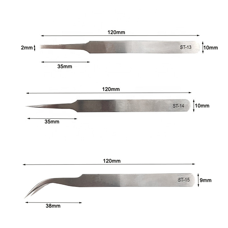 Ruostumattomasta teräksestä valmistetut pinsettit on valmistettu korkealaatuisesta ruostumattomasta teräksestä, ja hienon käsittelyn ja tiukan tarkastuksen avulla ne varmistavat niiden erinomaisen suorituskyvyn erilaisissa korkean kysynnän sovelluksissa. Seuraavat ovat ruostumattomasta teräksestä valmistettujen pinsetit: